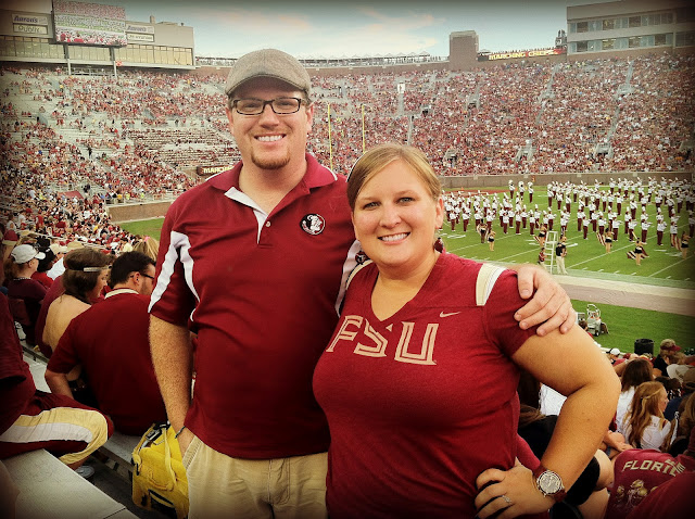 Saturday afternoon/night = lunch with my parents, then some quick errands around town with the boyfriend. We scrambled last minute finding some tickets to the FSU game, but lucked out and got 2 for $20 from a friend of his families! Yay! Then we went to the tailgate of some of his co-workers, and man, do they ever know how to tailgate! Sooo much food! And tons of people and kids, and tents and TV's with a satellite. They were serious man. But we had a good time, and FSU won big time (69-3) so of course it was fun!